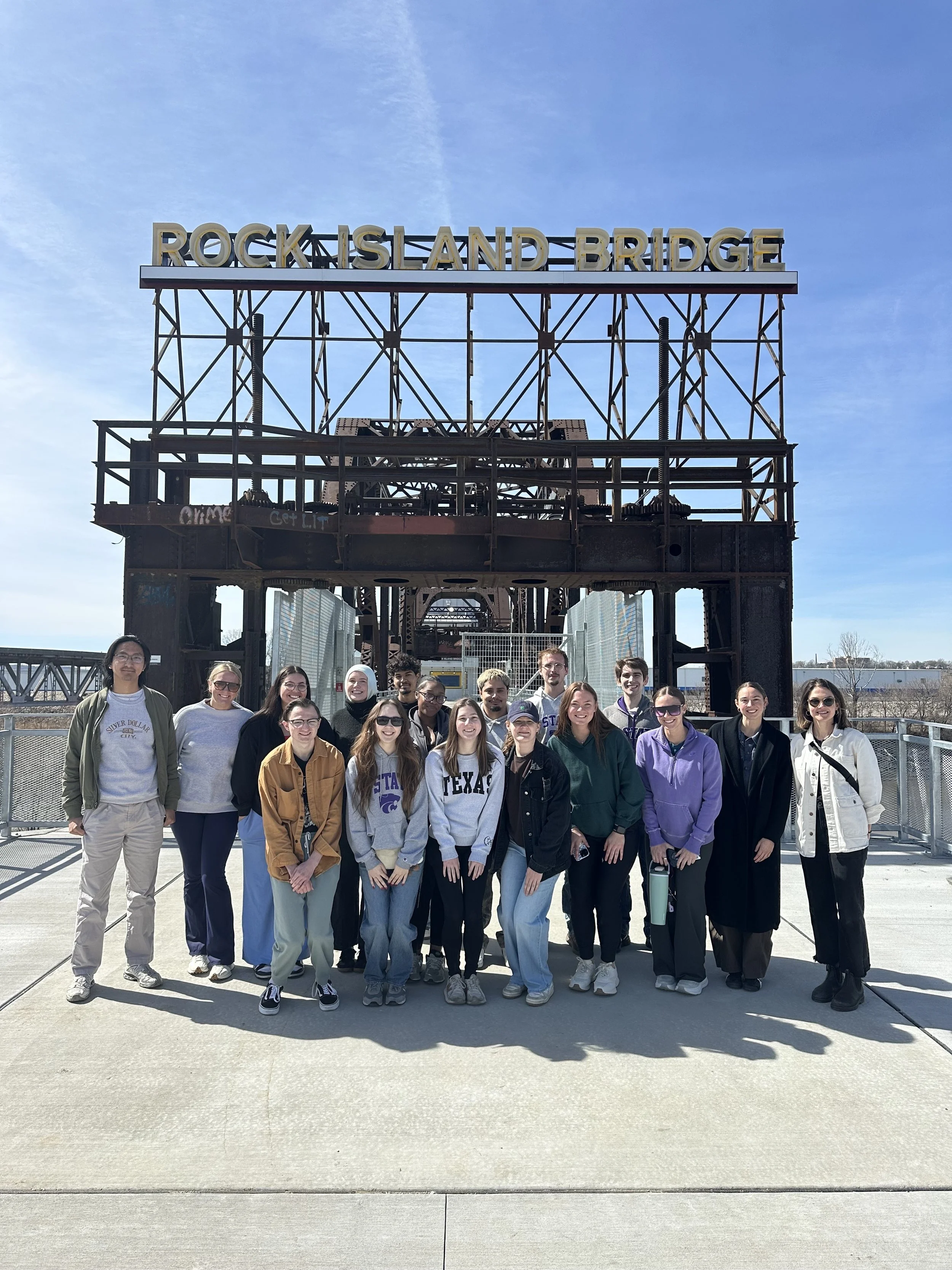 Friday, the studio toured the Rock Island Bridge to explore another example of infrastructure being reimagined as public space. After the tour, the studio regrouped to discuss roles for the second half of the semester and began preparing for the upcoming community meeting as the Greenline proposals continue to evolve.