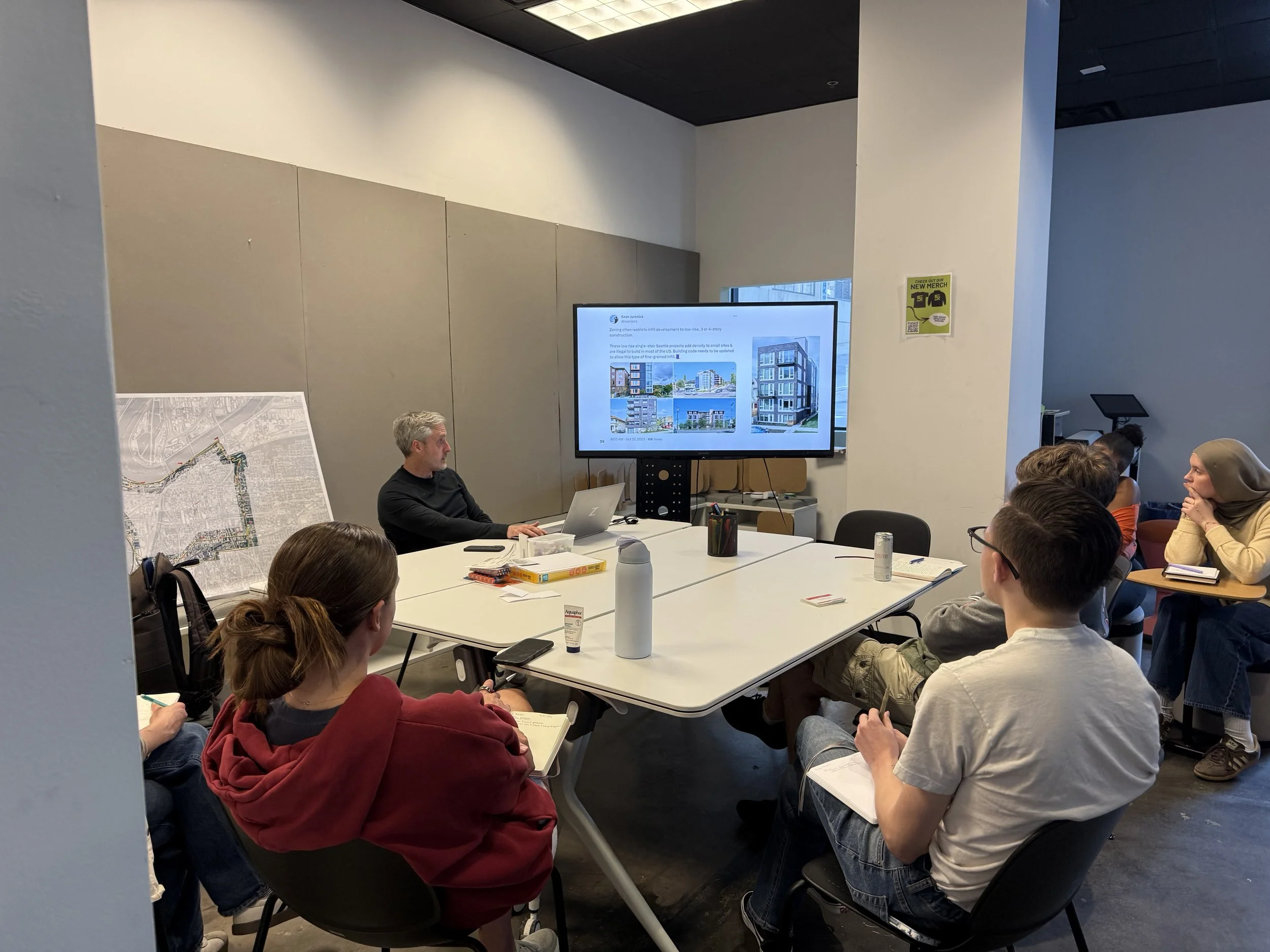 During our seminar centering around housing and the housing crisis across Kansas City, we were able to hear from Trevor Acorn, a structural engineer at Walter P. Moore and a pivotal figure in passing single stair reform policy for multi-unit housing developments. He provided insight and optimism for safer, smaller, and more affordable housing options through changing building standards and zoning codes. Trevor got us to think critically in our approach to designing high density housing.
